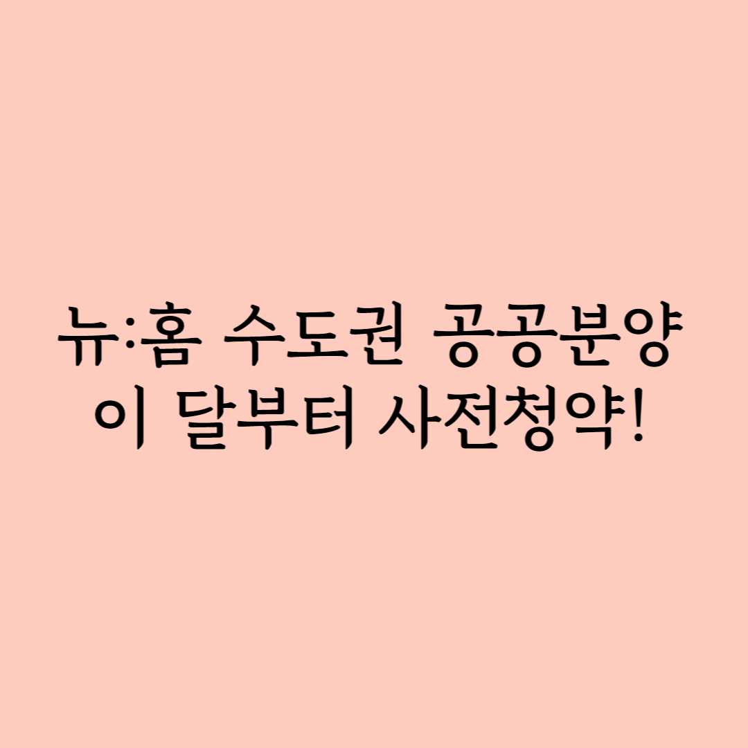 뉴홈에 대해 들어보신 적 있으신가요? 내 집 마련, 주거 상향 등을 목표로 청년특공, 획기적 전용 모기지 등으로 청년과 서민의 내 집 마련 부담을 덜어주기 위한 공공분양주택 50만호에 저소득 취약계층을 위한 공공임대 50만 호까지 총 100만 가구를 목표로 한 국토교통부 정책입니다. 뉴:홈이 2023년에 공공분양 1만 호를 공급한다는 반가운 소식! 올해는 6월, 9월, 12월에 사전 청약 공급계획이 있고 일단 6월 수도권 사전 청약 일정이 확정되었습니다. 뿐만 아니라 2024년에는 지방에서도 사전 청약을 진행한다고 하니 더욱 기대가 됩니다. 6월 19일부터 시작되는 사전 청약 세부 계획 알려드릴 테니 해당하시는 분들 내용 잘 살펴보시고 늦지 않게 신청하시기 바랍니다.