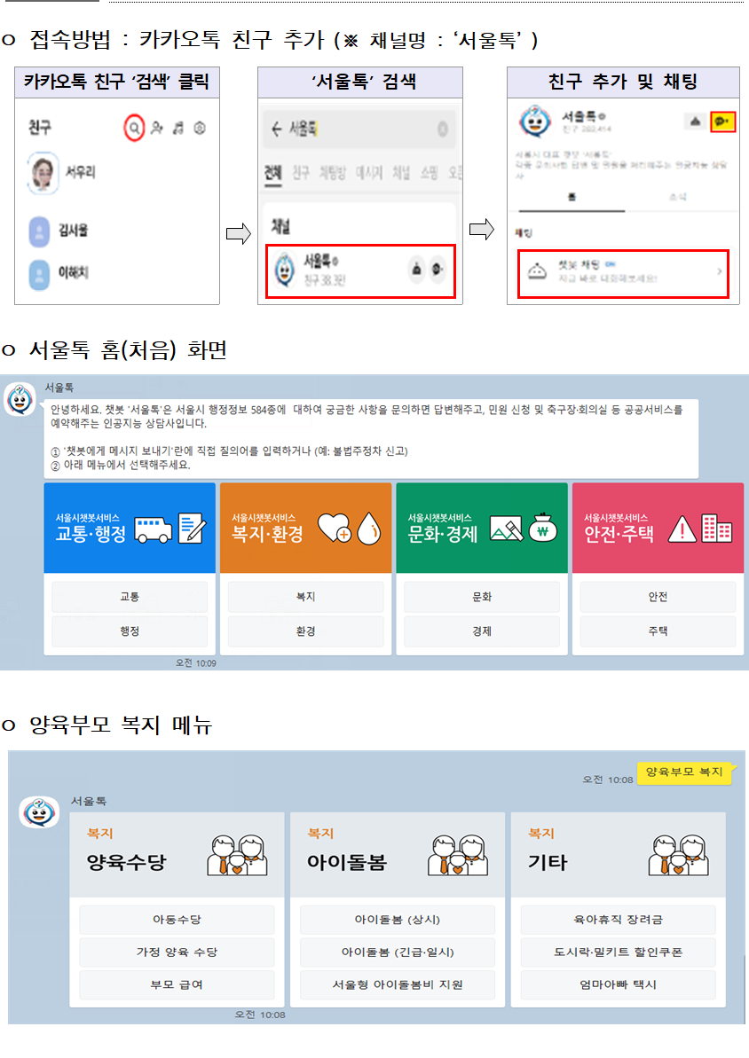 ⑷ 카카오톡 챗봇 '서울톡'으로 간편 확인